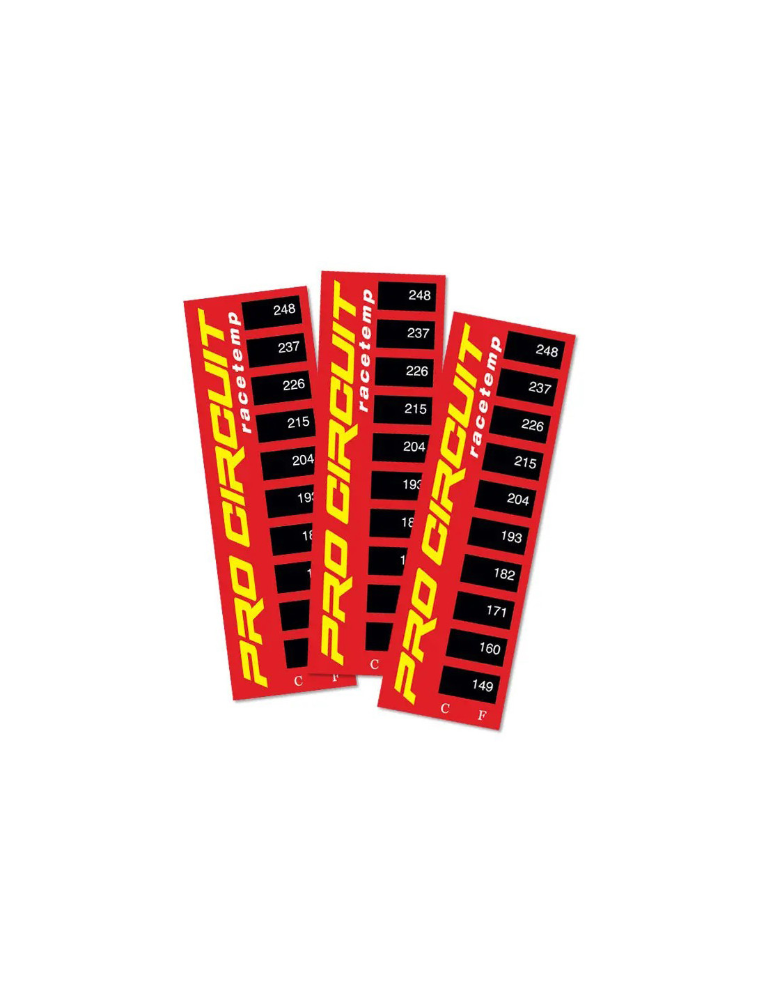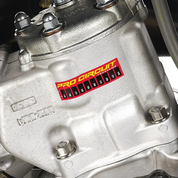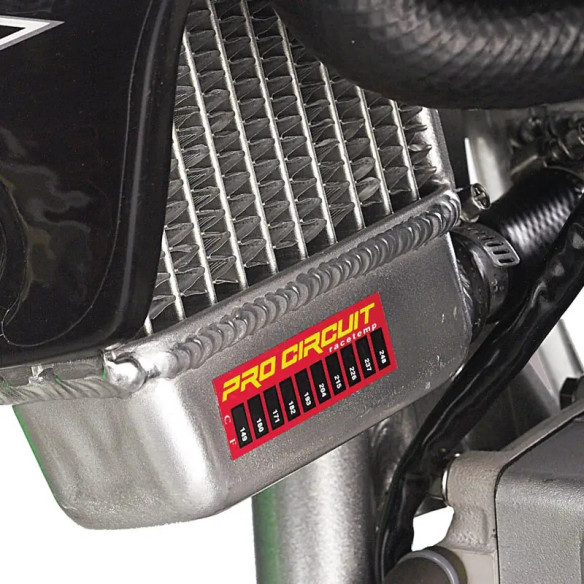 El sobrecalentamiento es la principal causa de pérdida de potencia y rendimiento en tu moto. Las motos de competición de alto rendimiento actuales están a la vanguardia del desarrollo y siguen superando los límites de la tecnología existente. Las tiras térmicas Pro Circuit Thermostrips vienen en paquetes de tres para que puedas controlar la temperatura de funcionamiento del motor, amortiguador o radiador y asegurarte de que no se reduce el rendimiento por sobrecalentamiento. Simplemente retira el protector de las tiras térmicas y colócalas en el motor, radiador o amortiguador para obtener una lectura precisa. Las tiras térmicas cambiarán de color a medida que la temperatura del elemento sobre el que se colocan aumenta, con un rango medible de 149 a 248 grados. Al enfriarse, el color se vuelve negro. Estas tiras térmicas seguirán brindándote lecturas precisas cada vez que montes hasta que las retires.