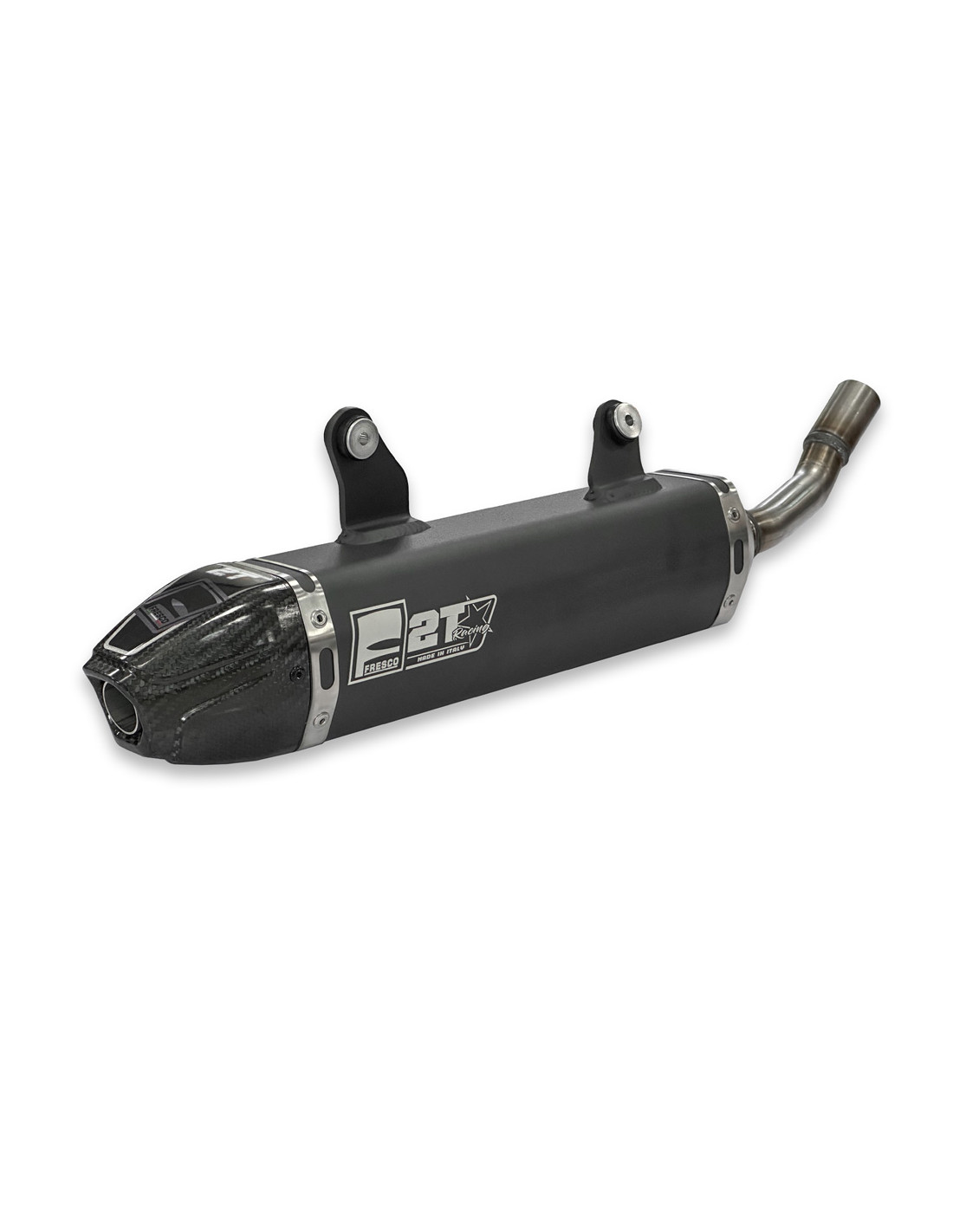 El silenciador Fresco Carby combina la ligereza del aluminio, la robustez del acero inoxidable y la flexibilidad de la fibra de carbono.