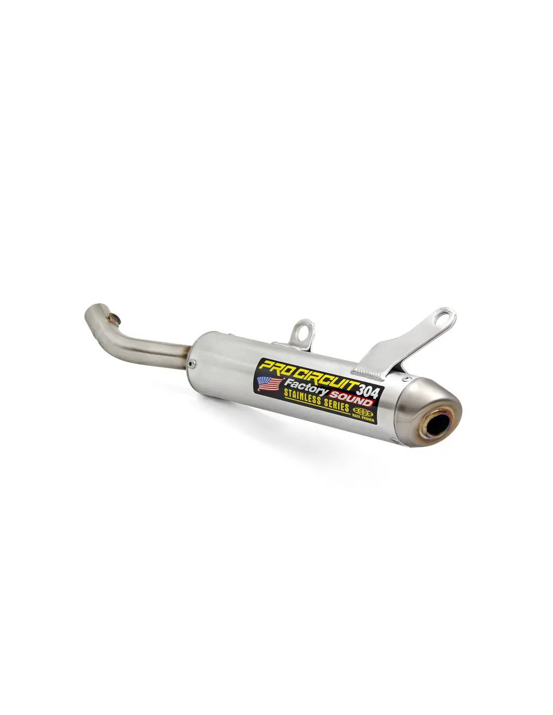 El silenciador Pro Circuit 304 se recomienda para la mayoría de las aplicaciones de dos tiempos. Su cuerpo ligeramente más largo ofrece un mayor rendimiento en la gama alta, a la vez que reduce el ruido. El cuerpo de aluminio cepillado, junto con el tubo de entrada y la tapa de acero inoxidable, le ofrece un silenciador con una estética tan buena como su rendimiento.