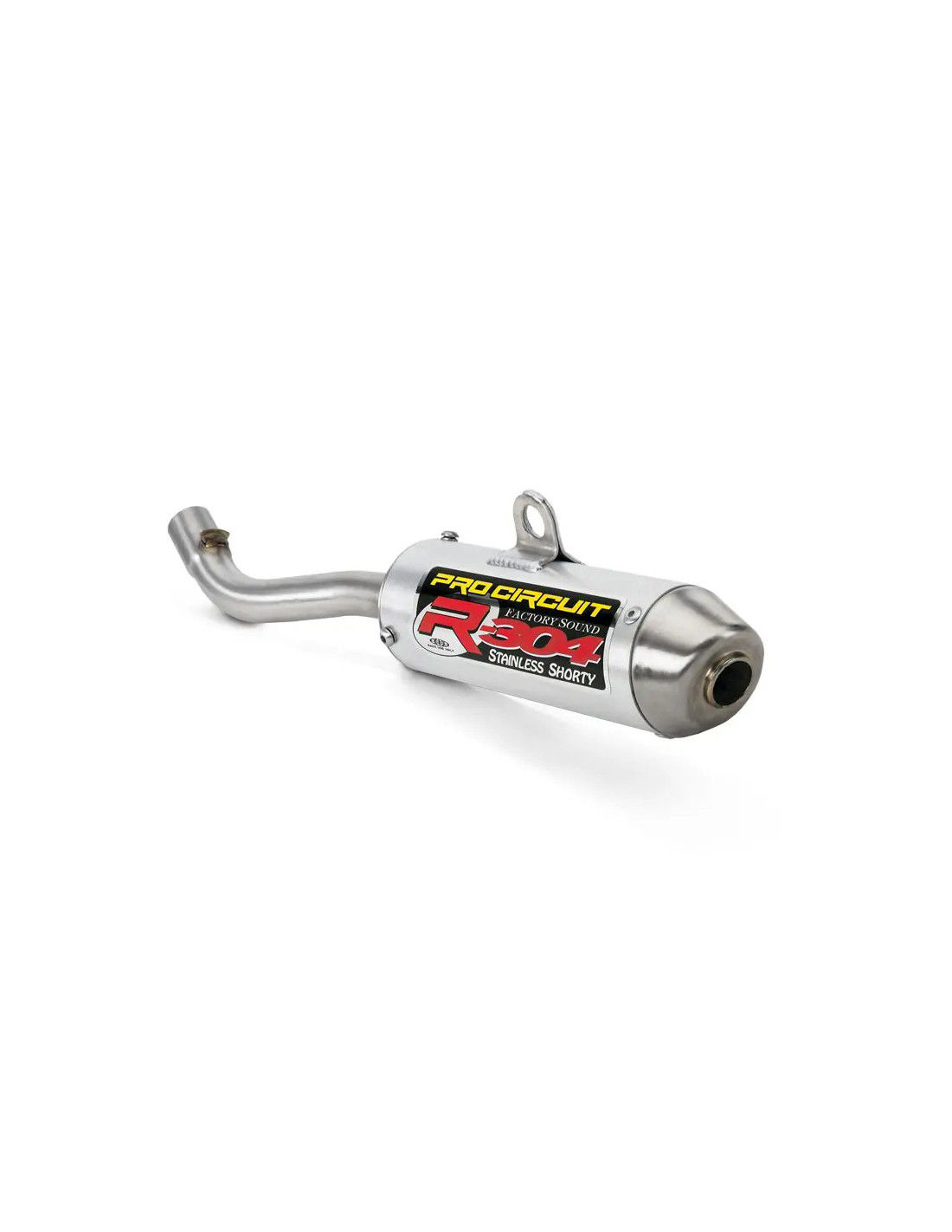 El silenciador Pro Circuit R-304 fue desarrollado como un silenciador de dos tiempos para competición. El diseño compacto en aluminio ofrece un rendimiento óptimo y se recomienda exclusivamente para carreras en circuito cerrado. El tapón de entrada está sujeto con tornillos de cabeza hexagonal, que se pueden quitar fácilmente para sustituir la fibra del silenciador.