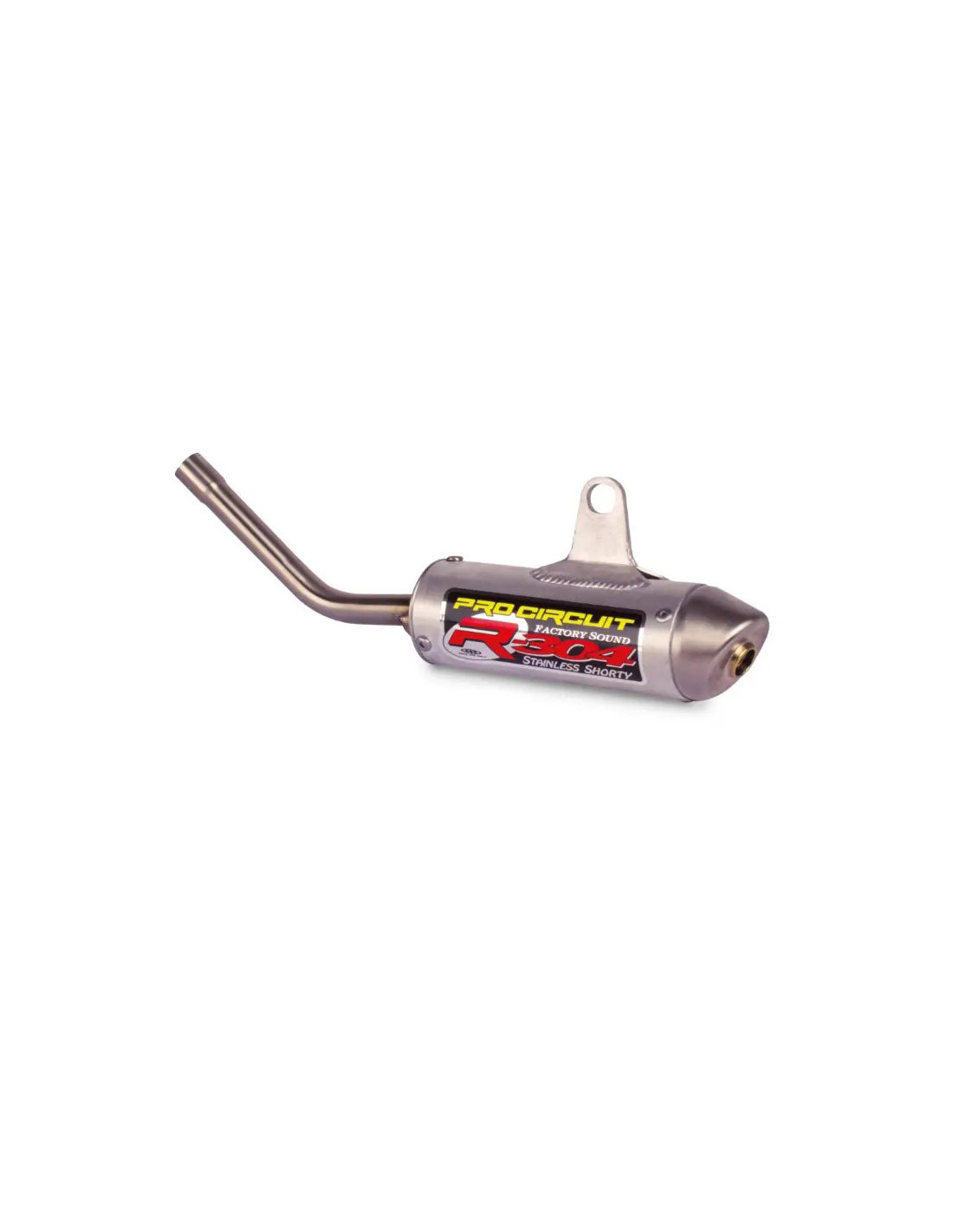 El silenciador Pro Circuit R-304 fue desarrollado como un silenciador de dos tiempos para competición. El diseño compacto en aluminio ofrece un rendimiento óptimo y se recomienda exclusivamente para carreras en circuito cerrado. El tapón de entrada está sujeto con tornillos de cabeza hexagonal, que se pueden quitar fácilmente para sustituir la fibra del silenciador.