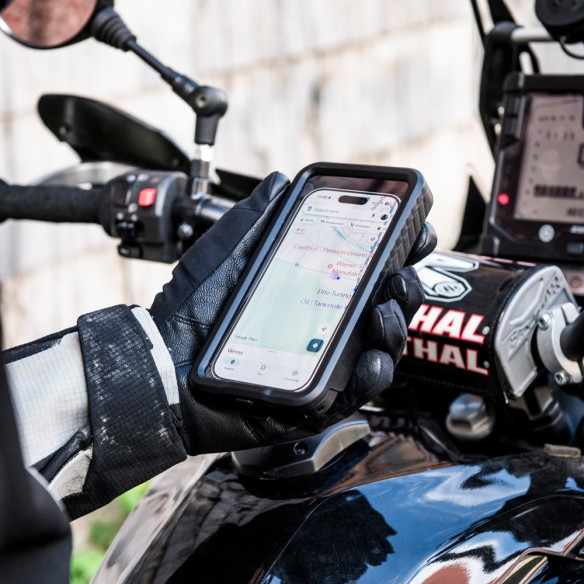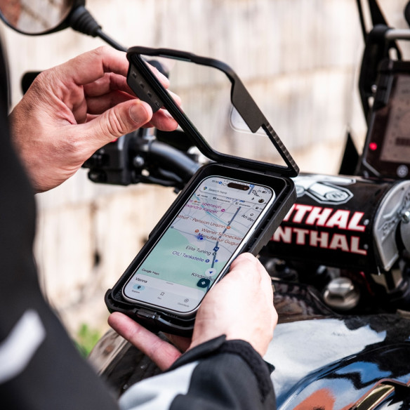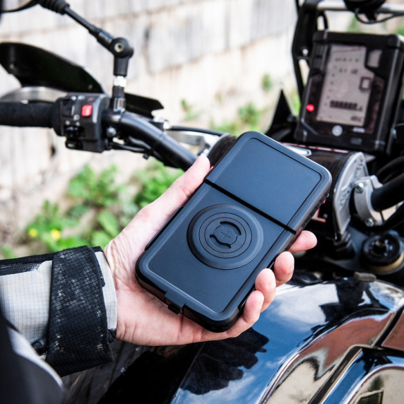 Atención: Si utiliza un smartphone con un estabilizador de imagen mecánico, recomendamos el uso de nuestro módulo reductor de vibraciones adicional, el Anti Vibration Module SPC+, para evitar de la mejor manera los posibles daños en el estabilizador de la cámara del teléfono causado por las vibraciones del motor de la moto. Si sigue teniendo problemas, no utilice el producto en combinación con este smartphone y póngase en contacto con el fabricante de su smartphone si no está seguro.