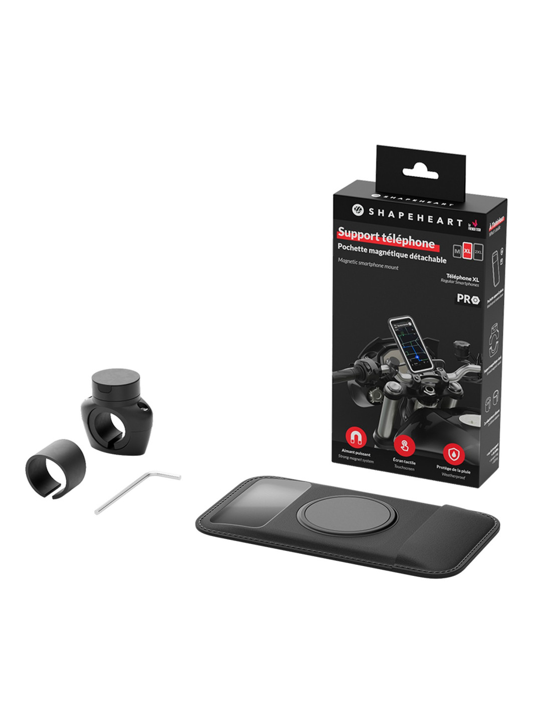 Shapeheart nos presenta su soporte magnético universal para Smartphone para moto SPH MOTO PRO. Una solución única en el mundo para que los amantes de las dos ruedas puedan disfrutar de las funciones de su Smartphone mientras circulan, especialmente para el uso de aplicaciones GPS. Incluye soporte Moto Pro para orientar como quieras tu Smartphone en el manillar.