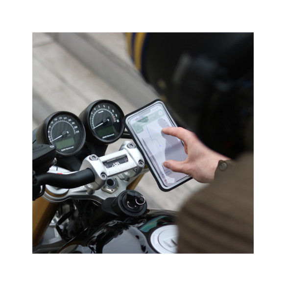 El último soporte multipropósito para Smartphone: fácil de instalar, fácil de usar, protege su teléfono Smartphone de la lluvia y garantiza una confiabilidad excepcional en cualquier carretera. La mejor relación calidad-precio del mercado.