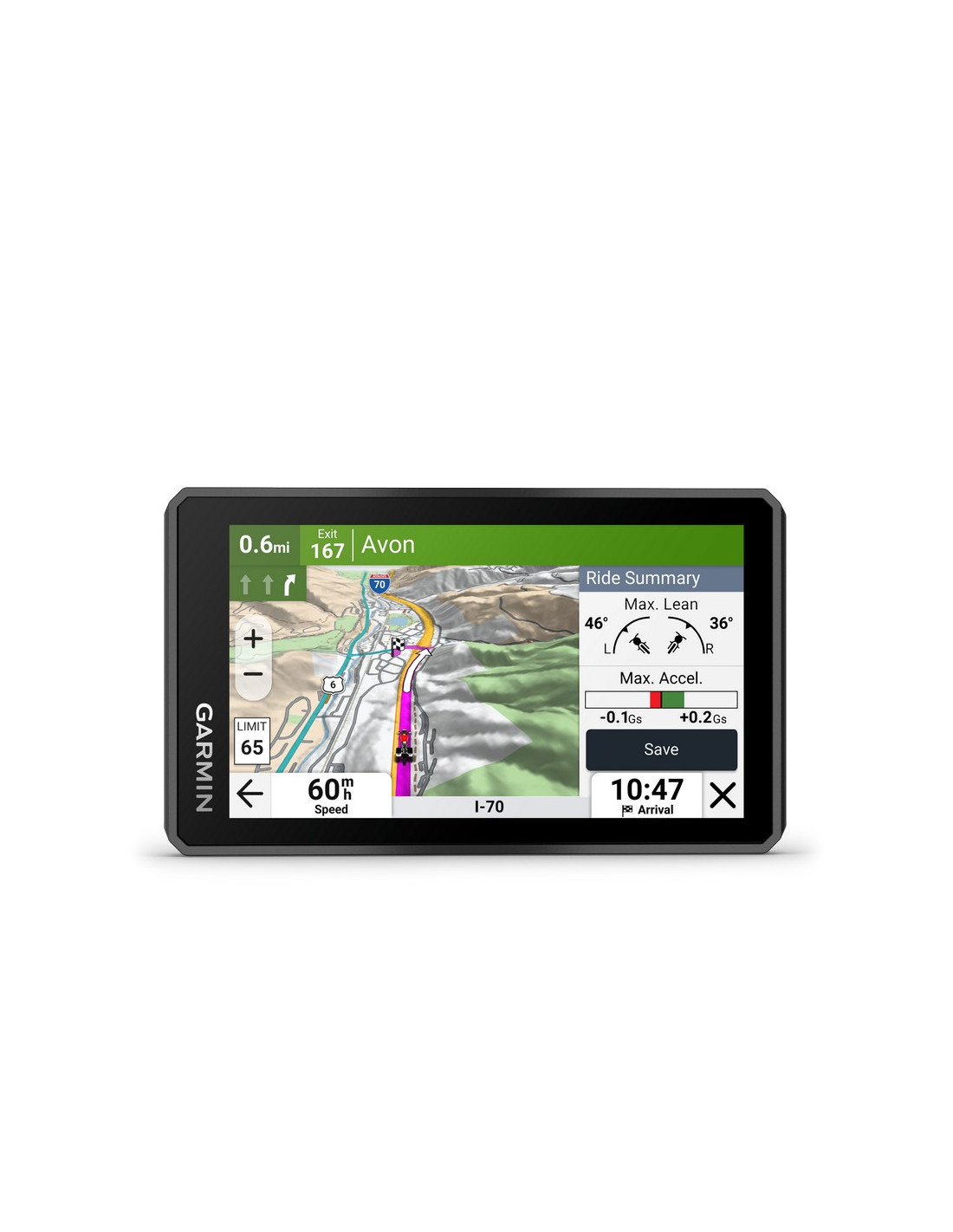 Cuando llegue el momento de ponerse en marcha, utiliza el planificador de rutas con los mapas preinstalados para crear una aventura personalizada; Las imágenes satelitales descargables muestran la vista desde arriba. También podrás visualizar cuanta inclinación hiciste en curvas con el indicador de ángulo inclinado y recorrer las carreteras más sinuosas, pintorescas o emocionantes con el entorno Garmin Adventurous Route y descubre rutas populares en tu mapa con la función de rutas de motos populares.
