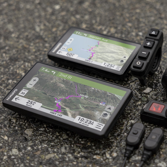 Controla el mapa cómodamente con los botones sin soltar el manillar mientras conduces al vincularlo por cable con el controlador del manillar con cable (se vende por separado).