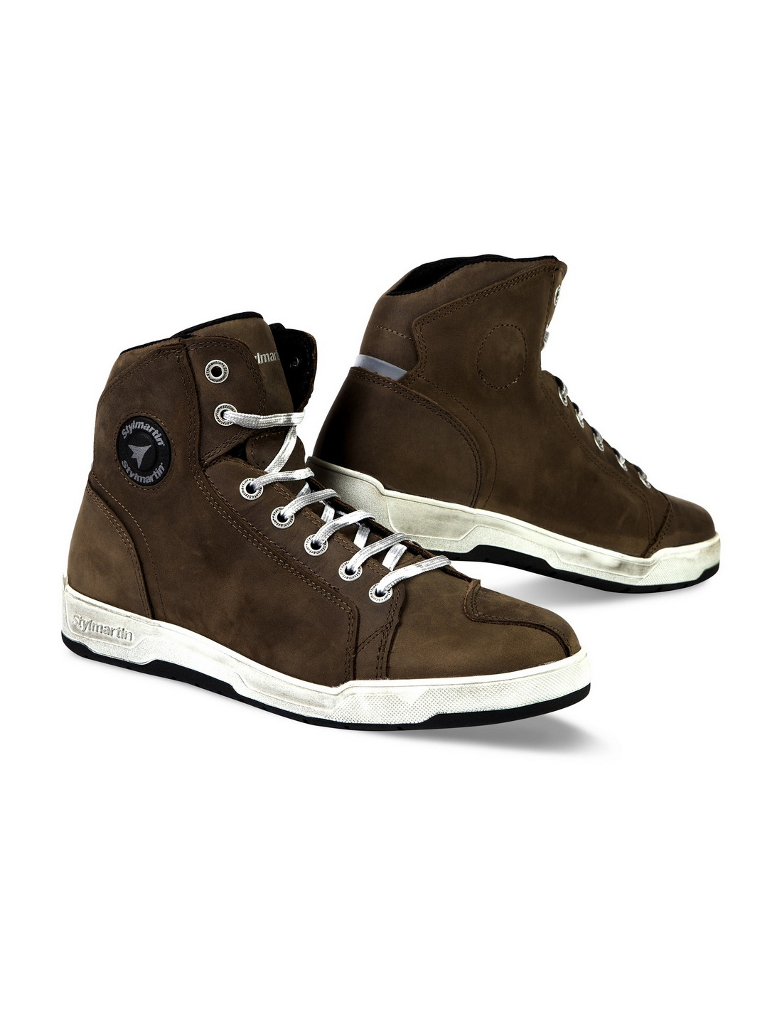 Estas populares y elegantes botas Marshall WP color taupe está confeccionada en piel de grano completo repelente al agua. La suela de goma bicolor y los cordones blancos desgastados le dan un toque de estilo, mientras que los detalles reflectantes en la parte trasera y los laterales garantizan la seguridad al montar en moto por la noche. Disponible en tallas para mujer.