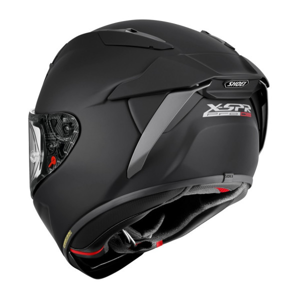 La innovación que hay detrás del nuevo X-SPR Pro 02 no se limita solamente a su excepcional rendimiento aerodinámico; las dimensiones alrededor de la zona ocular han sido revisadas proporcionando un campo de visión mucho más amplio, doble sistema de bloqueo de la pantalla para una mayor seguridad en caso de accidente, acolchados interiores mejorados, un sistema de ventilación mucho más eficiente y la posibilidad de instalar un sistema de hidratación opcional. Además, el nuevo casco de moto Shoei X-SPR Pro 02 dispone de doble homologación; la novedosa ECE22/06 para un uso convencional y FIM2 para un uso en competición.