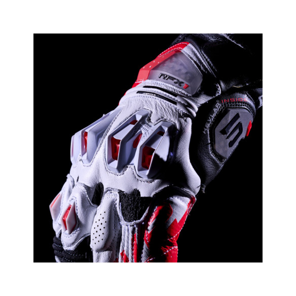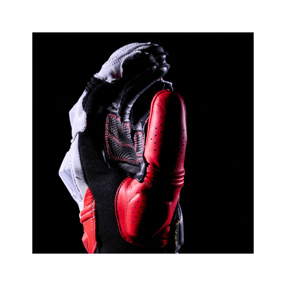 En la pista, la precisión en los mandos es esencial, pero también debe ir acompañada de una protección de primera clase en la palma en caso de contacto con el asfalto. El RFX1 EVO es la combinación perfecta de estos elementos, con su ensamblaje multicapa de elementos blandos altamente resistentes a la abrasión, con capas de cuero flor sobre Kevlar®, 3 milímetros de espuma y Superfabric®, así como una carcasa deslizante ERGO PROTECH® en forma de panal en el hipotenar. Supera con nota las pruebas de certificación CE de nivel 2. También se ha prestado especial atención al ajuste del guante, y la zona alrededor de la muñeca y el antebrazo ha sido totalmente rediseñada, incluyendo nuevos materiales que permiten una mayor maniobrabilidad al tiempo que ofrecen un soporte y una protección superiores.