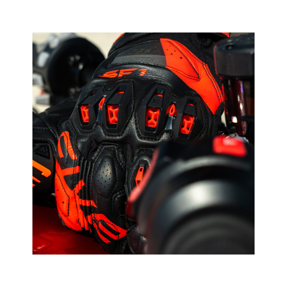 Como un roadster que conserva solo las características esenciales, el SF1 EVO, con su diseño de puño acortado, ofrece al piloto justo lo que necesita para un guante de alto rendimiento. Sin duda, encantará a los pilotos que disfrutan de la experiencia al máximo, pero que desean controlar los riesgos en caso de caída, mientras disfrutan al máximo del placer de conducir.