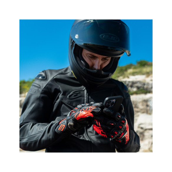 Al mando de una roadster superpotente, la precisión es esencial, pero también se necesita una protección de alto nivel. Por lo tanto, cada elemento protector está meticulosamente diseñado e integrado en el guante, empezando por las nuevas carcasas AirGo PROTECH™. Inspirados en la tecnología de los cascos, estos guantes incluyen una carcasa exterior rígida para resistir impactos y una carcasa interior suave con estructura de panal que absorbe cualquier impacto y favorece la ventilación. Los metacarpianos también están protegidos en la parte superior con un elemento de TPU con estructura de panal que limita el daño en caso de caída. La palma también conserva la carcasa de panal ERGO PROTECH®. La muñeca y el antebrazo están protegidos por un nuevo deslizador de puño TPR Cuff Slider™.
