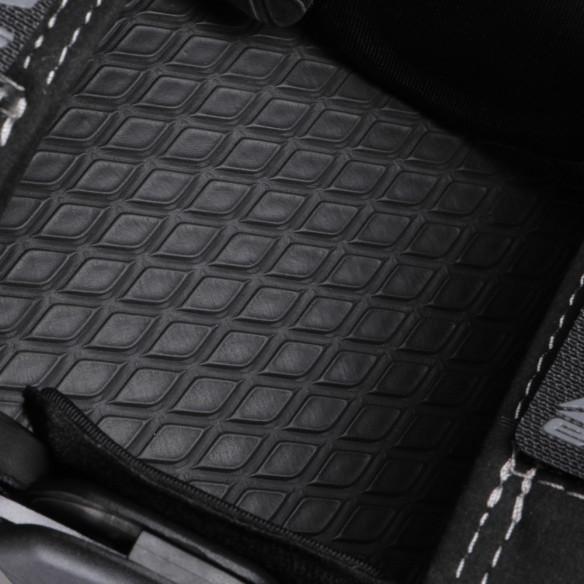 Este forro antimicrobiano proporciona un soporte acolchado suave y una superficie texturizada para limitar la migración de la rodillera.