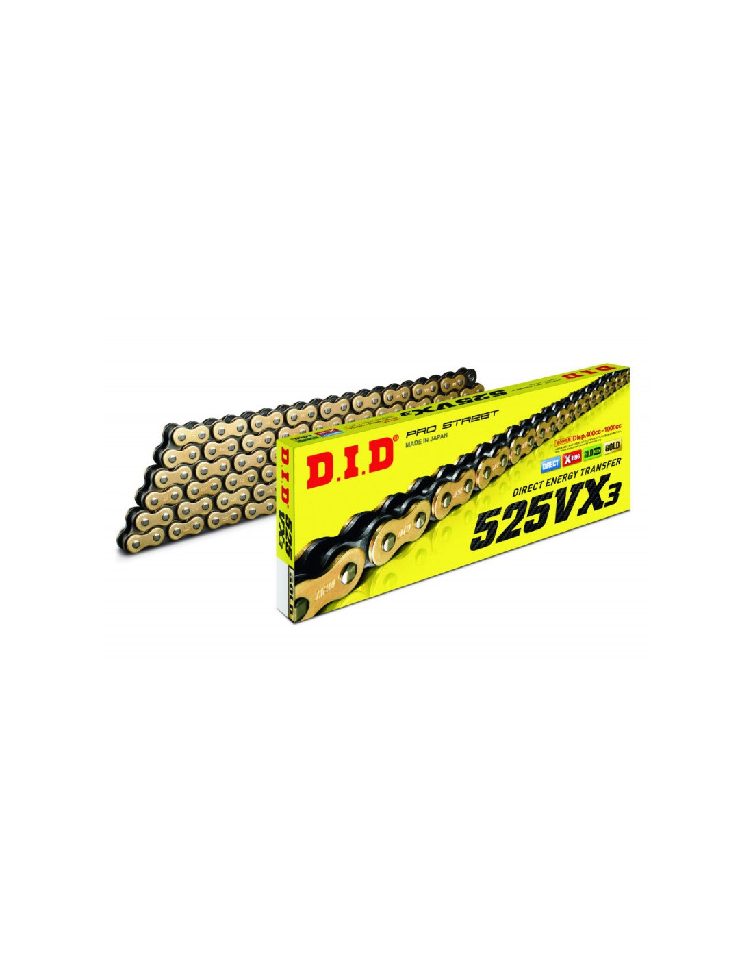 Cadena de moto DID 525VX3 x 118 ZB Oro / Negro