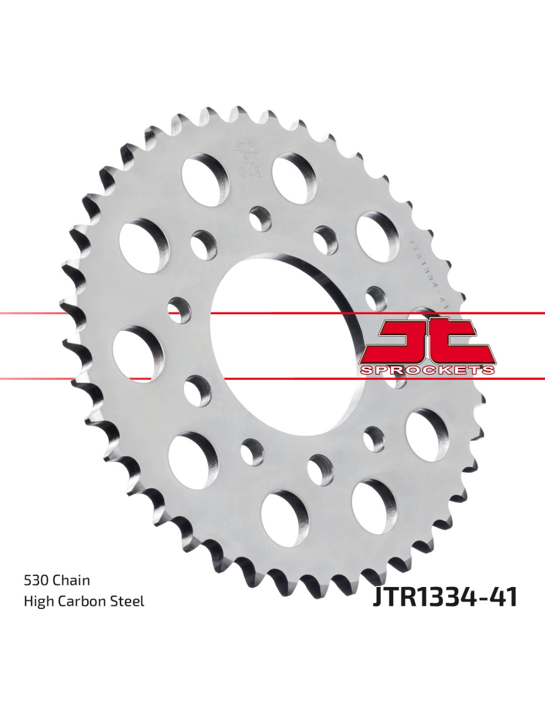 Los piñones y coronas de acero JT se fabrican utilizando acero de alto carbono C49 de la mejor calidad para las coronas y aleación de acero cromado SCM420 para los piñones. La gama de piñones y coronas JT cuenta con más de 2500 modelos para todas las motocicletas y vehículos todo terreno.