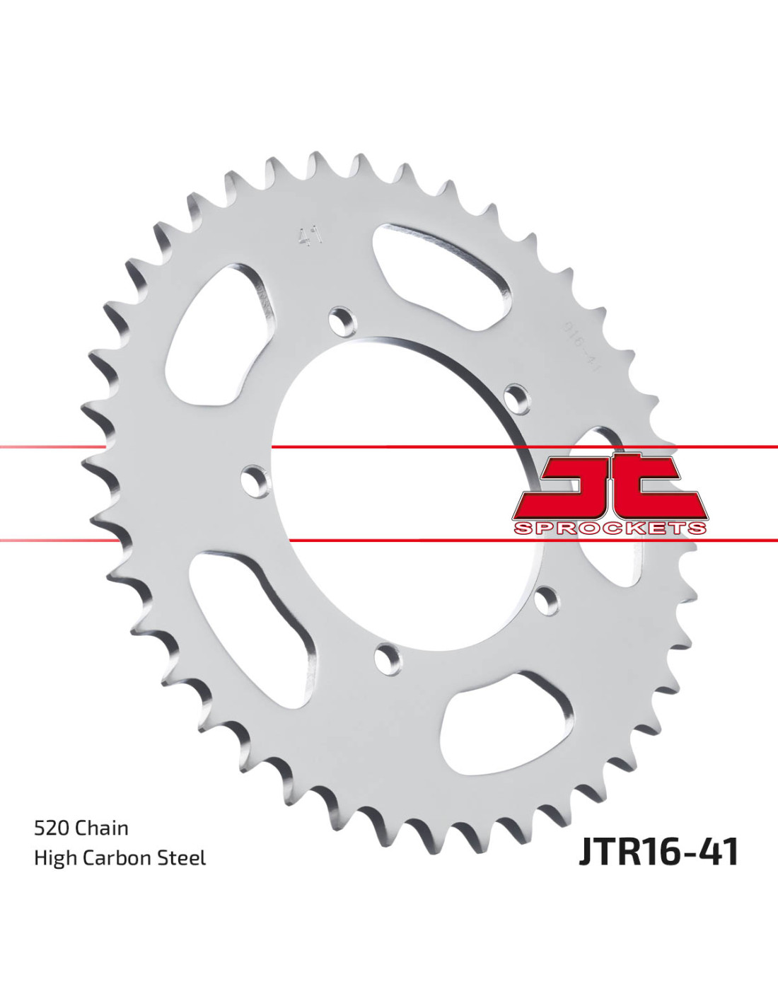 Los piñones y coronas de acero JT se fabrican utilizando acero de alto carbono C49 de la mejor calidad para las coronas y aleación de acero cromado SCM420 para los piñones. La gama de piñones y coronas JT cuenta con más de 2500 modelos para todas las motocicletas y vehículos todo terreno.