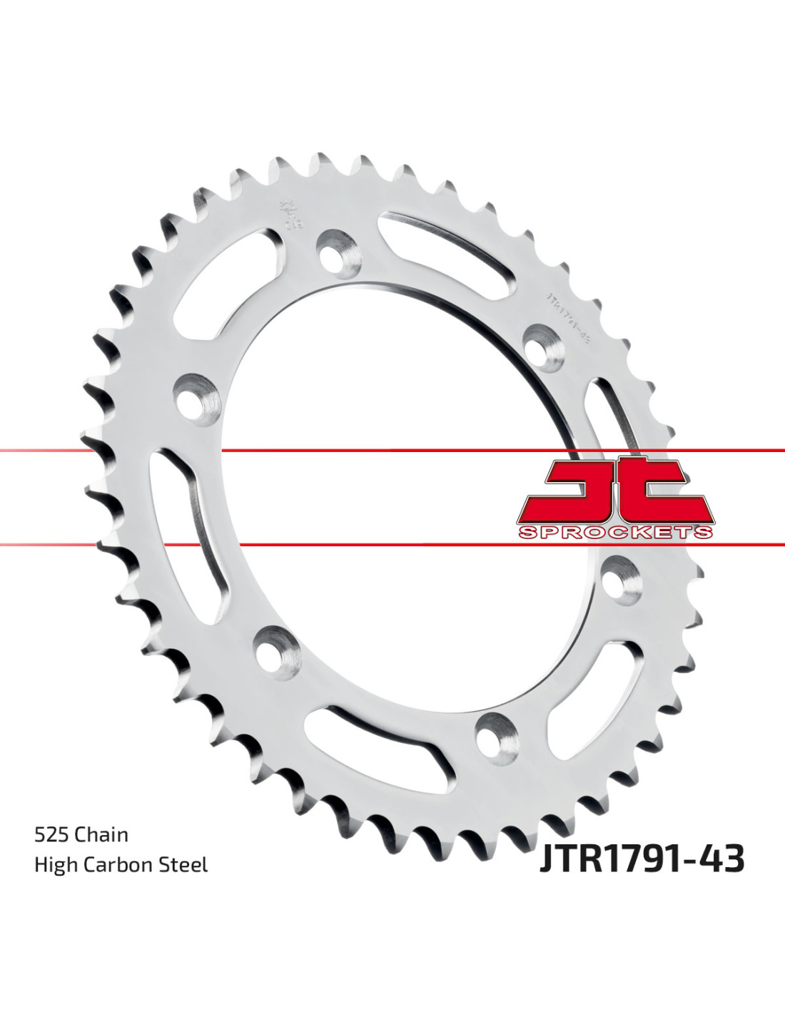 Los piñones y coronas de acero JT se fabrican utilizando acero de alto carbono C49 de la mejor calidad para las coronas y aleación de acero cromado SCM420 para los piñones. La gama de piñones y coronas JT cuenta con más de 2500 modelos para todas las motocicletas y vehículos todo terreno.