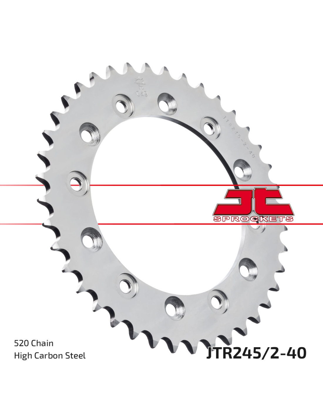 Los piñones y coronas de acero JT se fabrican utilizando acero de alto carbono C49 de la mejor calidad para las coronas y aleación de acero cromado SCM420 para los piñones. La gama de piñones y coronas JT cuenta con más de 2500 modelos para todas las motocicletas y vehículos todo terreno.