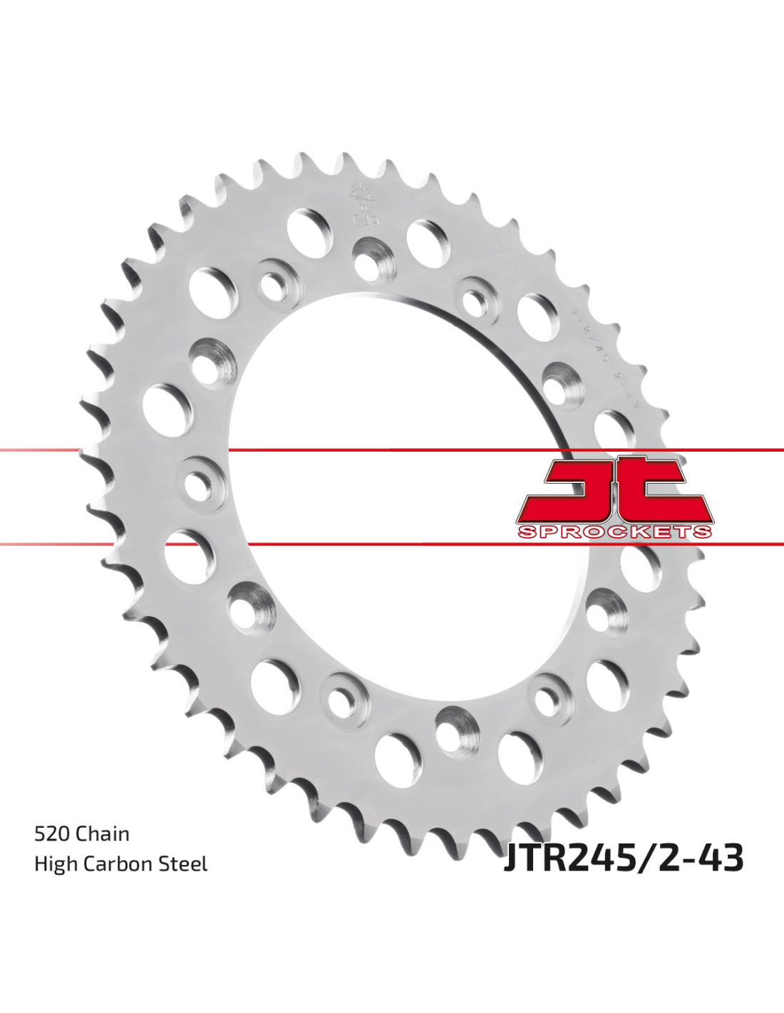 Los piñones y coronas de acero JT se fabrican utilizando acero de alto carbono C49 de la mejor calidad para las coronas y aleación de acero cromado SCM420 para los piñones. La gama de piñones y coronas JT cuenta con más de 2500 modelos para todas las motocicletas y vehículos todo terreno.