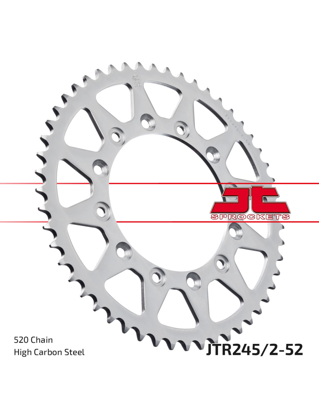 Los piñones y coronas de acero JT se fabrican utilizando acero de alto carbono C49 de la mejor calidad para las coronas y aleación de acero cromado SCM420 para los piñones. La gama de piñones y coronas JT cuenta con más de 2500 modelos para todas las motocicletas y vehículos todo terreno.