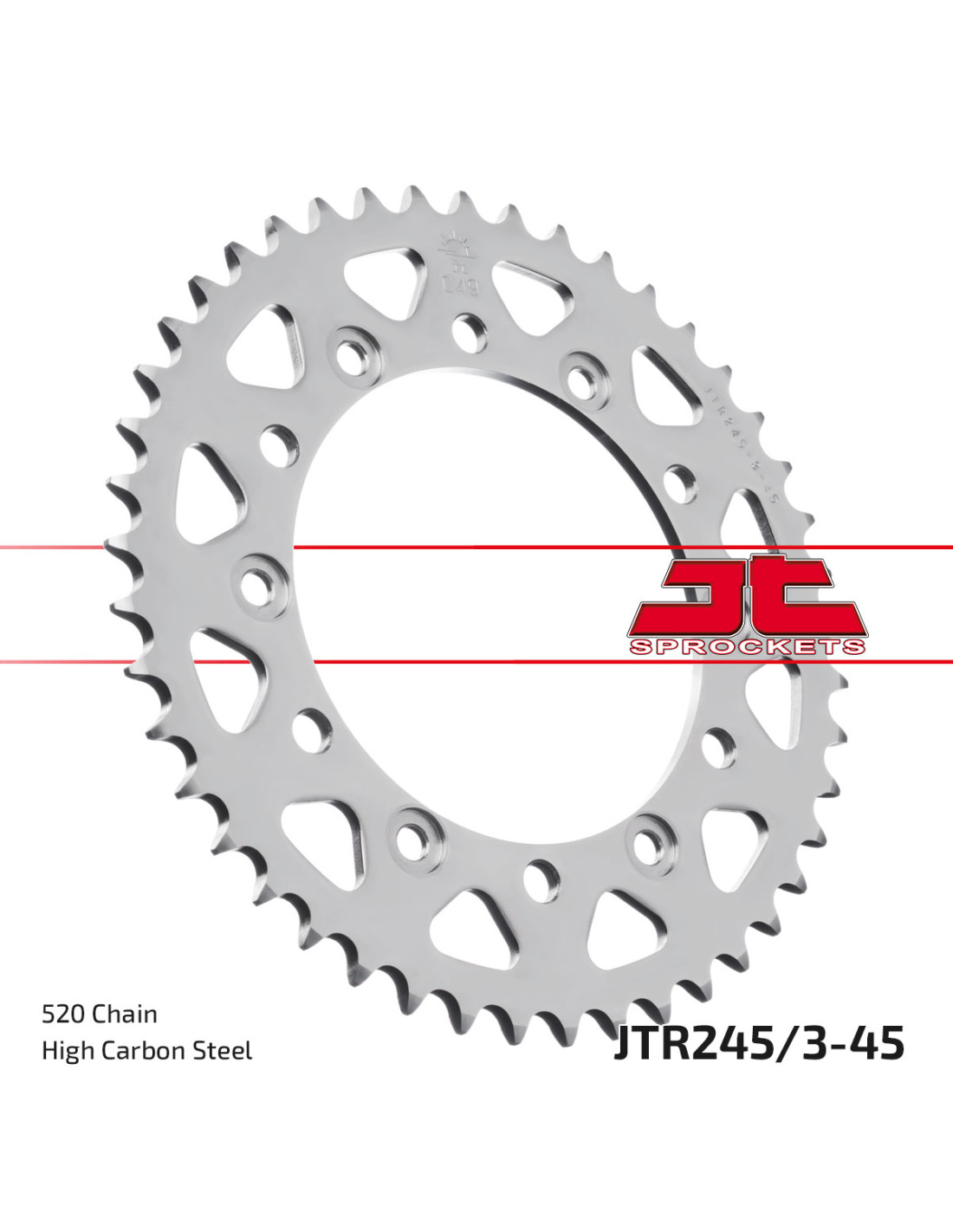 Los piñones y coronas de acero JT se fabrican utilizando acero de alto carbono C49 de la mejor calidad para las coronas y aleación de acero cromado SCM420 para los piñones. La gama de piñones y coronas JT cuenta con más de 2500 modelos para todas las motocicletas y vehículos todo terreno.