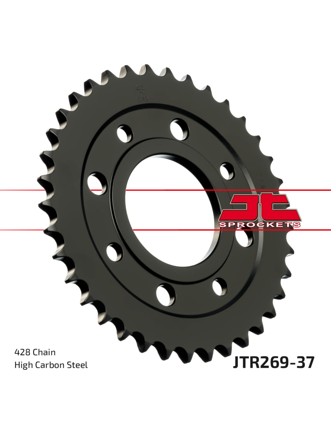 Los piñones y coronas de acero JT se fabrican utilizando acero de alto carbono C49 de la mejor calidad para las coronas y aleación de acero cromado SCM420 para los piñones. La gama de piñones y coronas JT cuenta con más de 2500 modelos para todas las motocicletas y vehículos todo terreno.