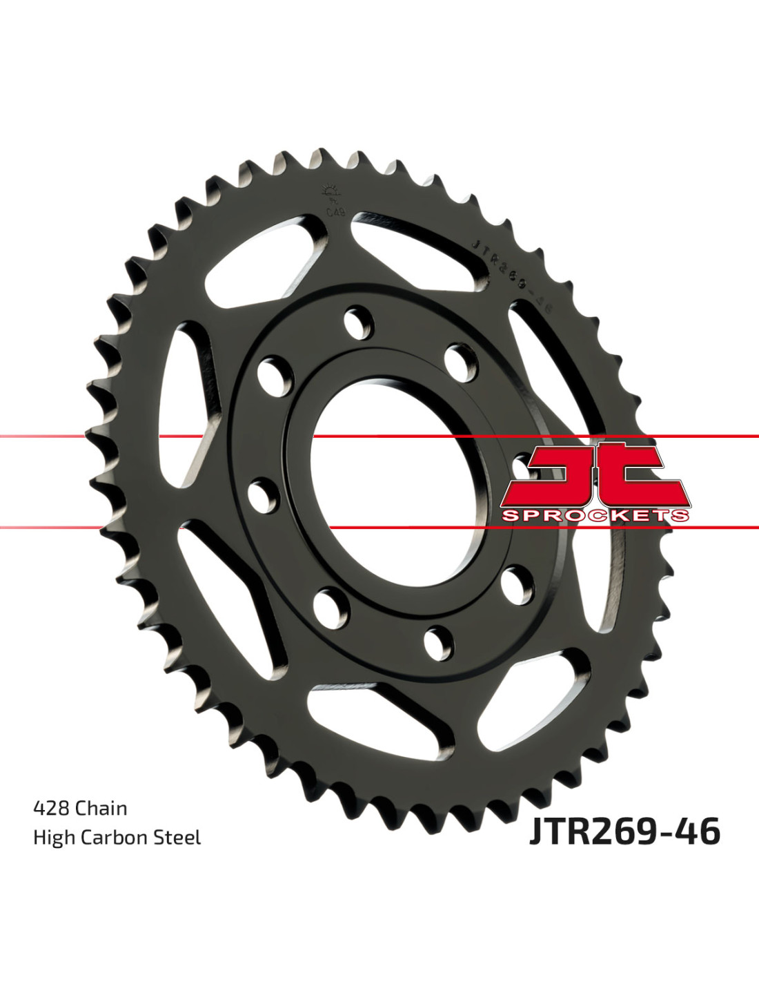 Los piñones y coronas de acero JT se fabrican utilizando acero de alto carbono C49 de la mejor calidad para las coronas y aleación de acero cromado SCM420 para los piñones. La gama de piñones y coronas JT cuenta con más de 2500 modelos para todas las motocicletas y vehículos todo terreno.