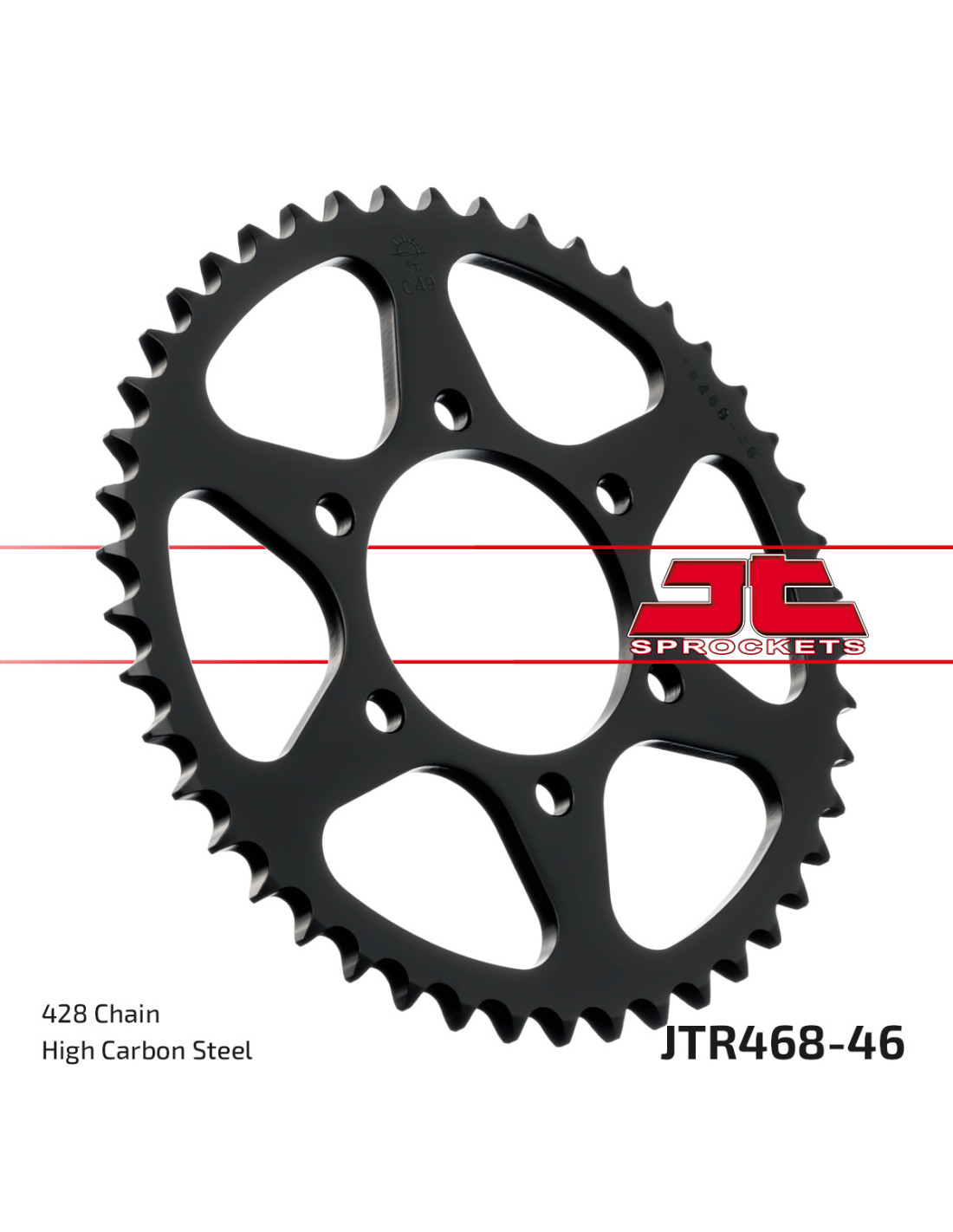 Los piñones y coronas de acero JT se fabrican utilizando acero de alto carbono C49 de la mejor calidad para las coronas y aleación de acero cromado SCM420 para los piñones. La gama de piñones y coronas JT cuenta con más de 2500 modelos para todas las motocicletas y vehículos todo terreno.