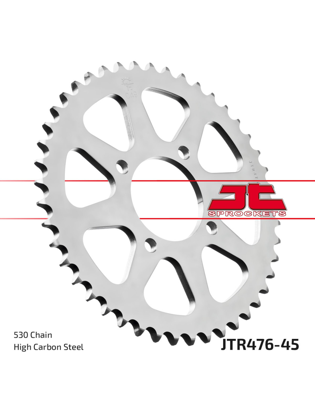 Los piñones y coronas de acero JT se fabrican utilizando acero de alto carbono C49 de la mejor calidad para las coronas y aleación de acero cromado SCM420 para los piñones. La gama de piñones y coronas JT cuenta con más de 2500 modelos para todas las motocicletas y vehículos todo terreno.