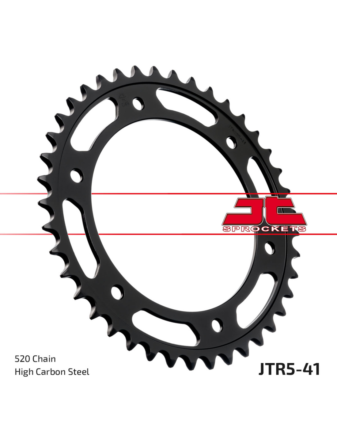 Los piñones y coronas de acero JT se fabrican utilizando acero de alto carbono C49 de la mejor calidad para las coronas y aleación de acero cromado SCM420 para los piñones. La gama de piñones y coronas JT cuenta con más de 2500 modelos para todas las motocicletas y vehículos todo terreno.