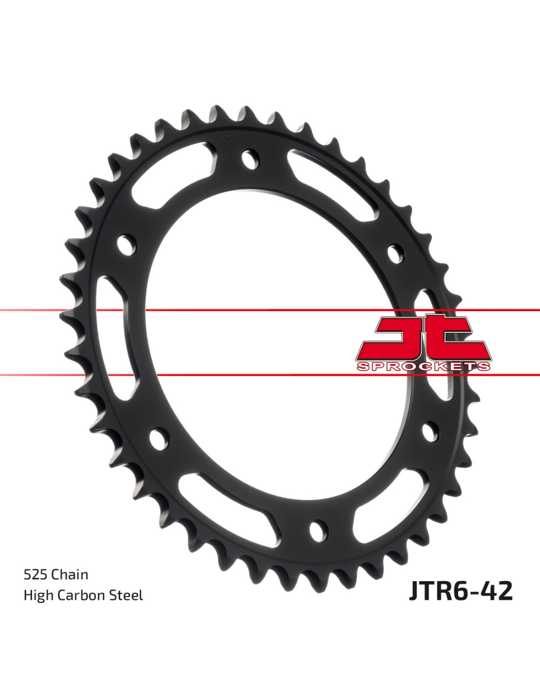 Los piñones y coronas de acero JT se fabrican utilizando acero de alto carbono C49 de la mejor calidad para las coronas y aleación de acero cromado SCM420 para los piñones. La gama de piñones y coronas JT cuenta con más de 2500 modelos para todas las motocicletas y vehículos todo terreno.