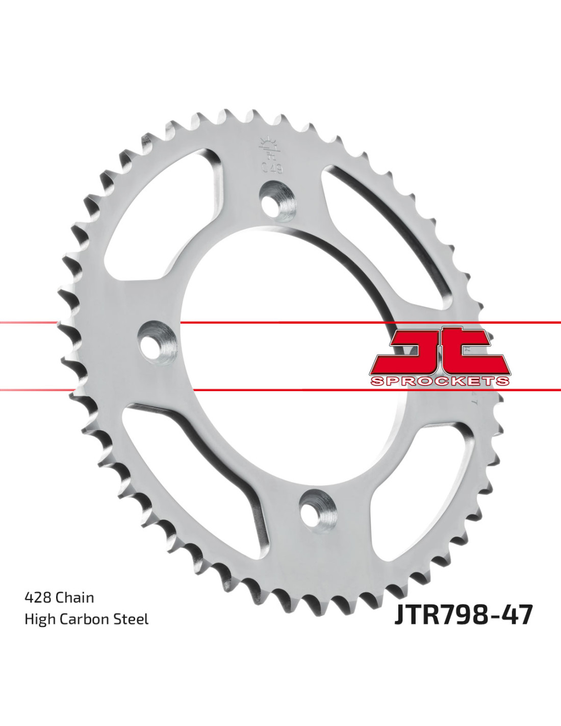 Los piñones y coronas de acero JT se fabrican utilizando acero de alto carbono C49 de la mejor calidad para las coronas y aleación de acero cromado SCM420 para los piñones. La gama de piñones y coronas JT cuenta con más de 2500 modelos para todas las motocicletas y vehículos todo terreno.