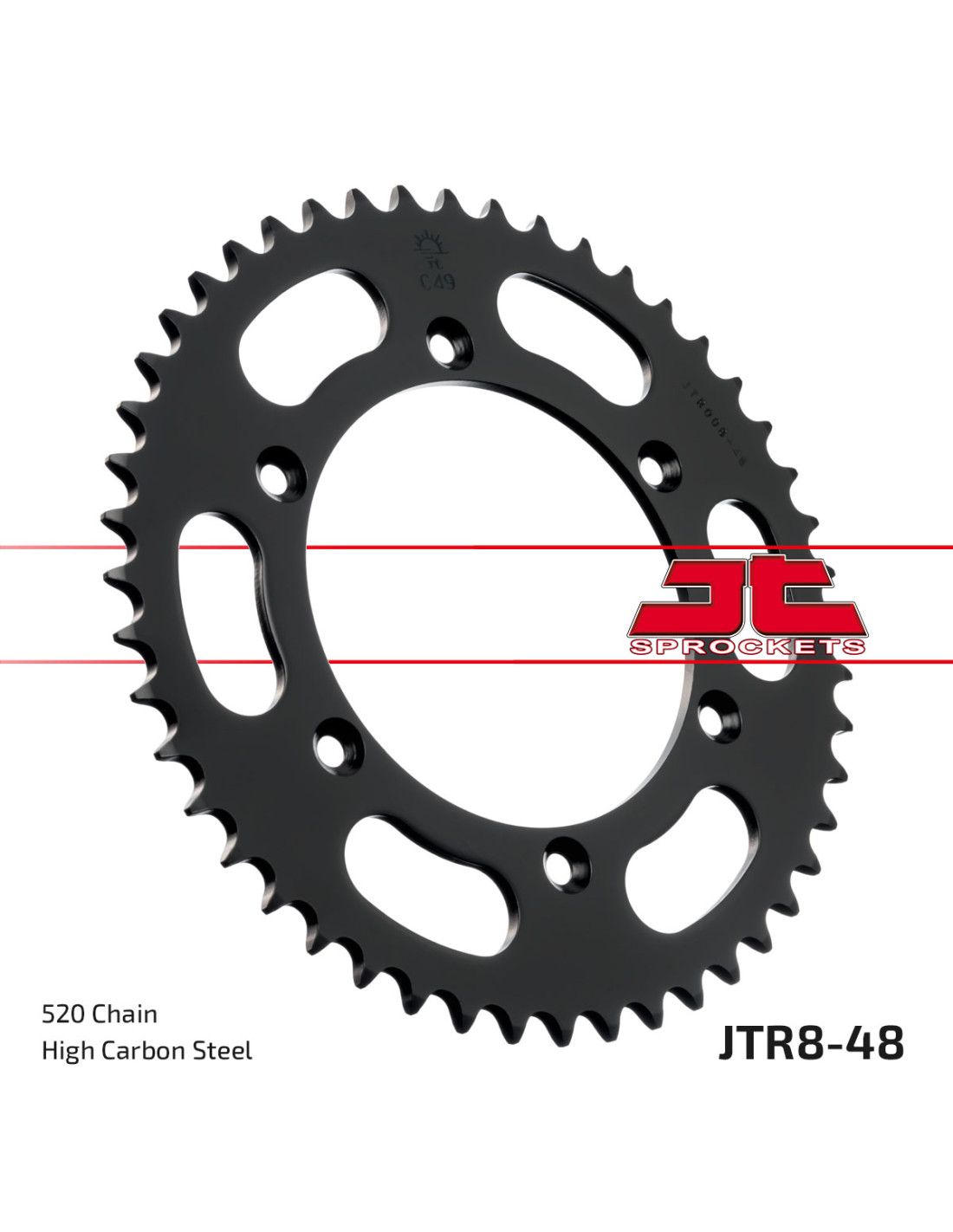Los piñones y coronas de acero JT se fabrican utilizando acero de alto carbono C49 de la mejor calidad para las coronas y aleación de acero cromado SCM420 para los piñones. La gama de piñones y coronas JT cuenta con más de 2500 modelos para todas las motocicletas y vehículos todo terreno.
