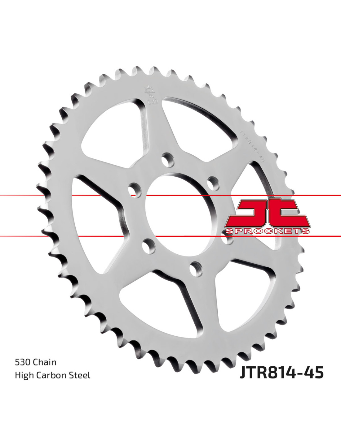 Los piñones y coronas de acero JT se fabrican utilizando acero de alto carbono C49 de la mejor calidad para las coronas y aleación de acero cromado SCM420 para los piñones. La gama de piñones y coronas JT cuenta con más de 2500 modelos para todas las motocicletas y vehículos todo terreno.