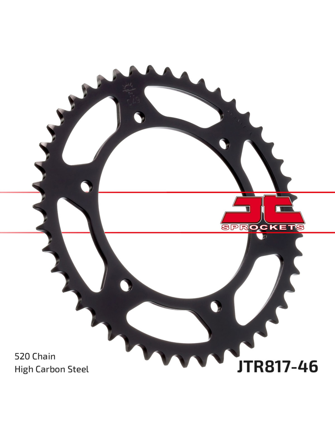Los piñones y coronas de acero JT se fabrican utilizando acero de alto carbono C49 de la mejor calidad para las coronas y aleación de acero cromado SCM420 para los piñones. La gama de piñones y coronas JT cuenta con más de 2500 modelos para todas las motocicletas y vehículos todo terreno.