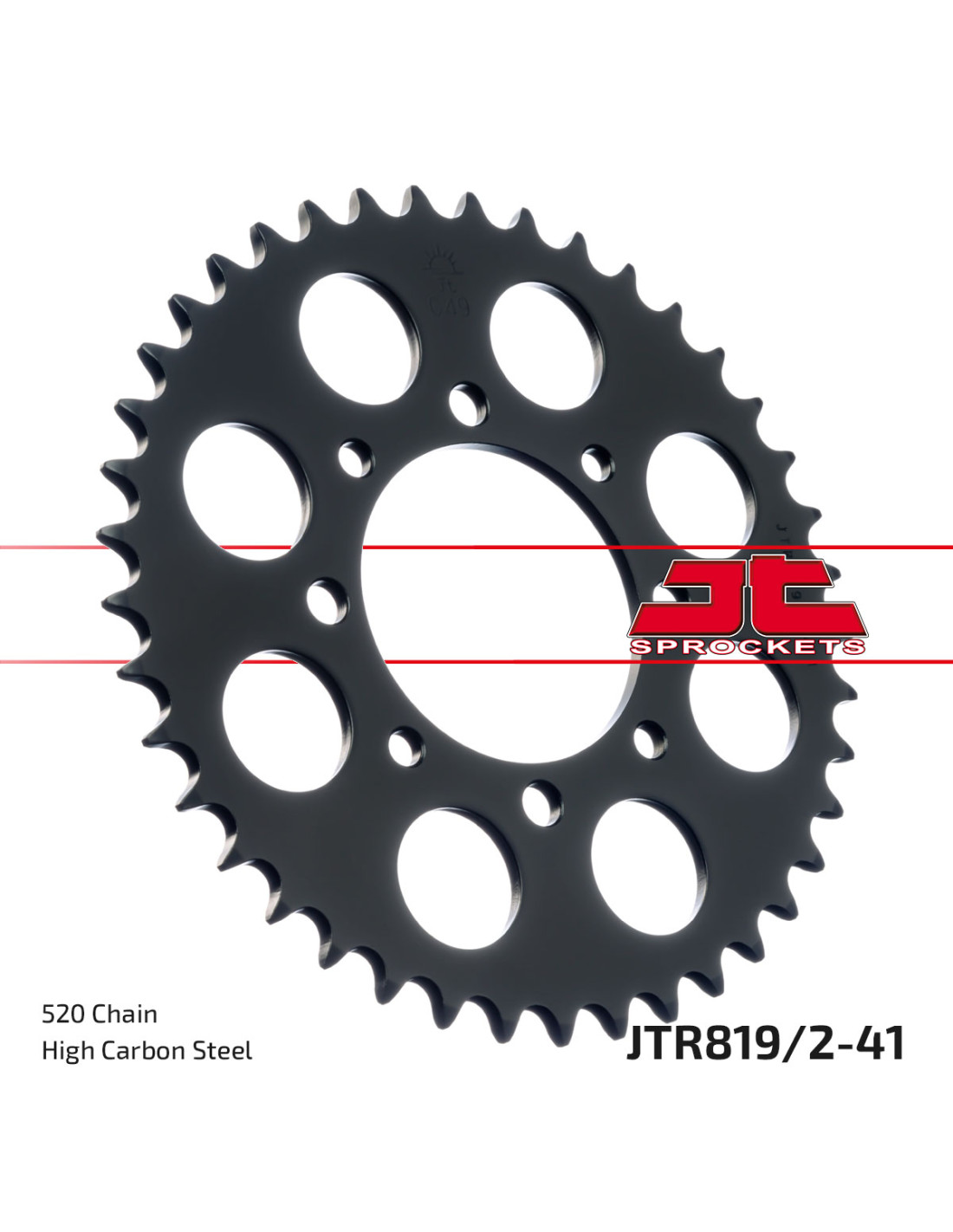 Los piñones y coronas de acero JT se fabrican utilizando acero de alto carbono C49 de la mejor calidad para las coronas y aleación de acero cromado SCM420 para los piñones. La gama de piñones y coronas JT cuenta con más de 2500 modelos para todas las motocicletas y vehículos todo terreno.