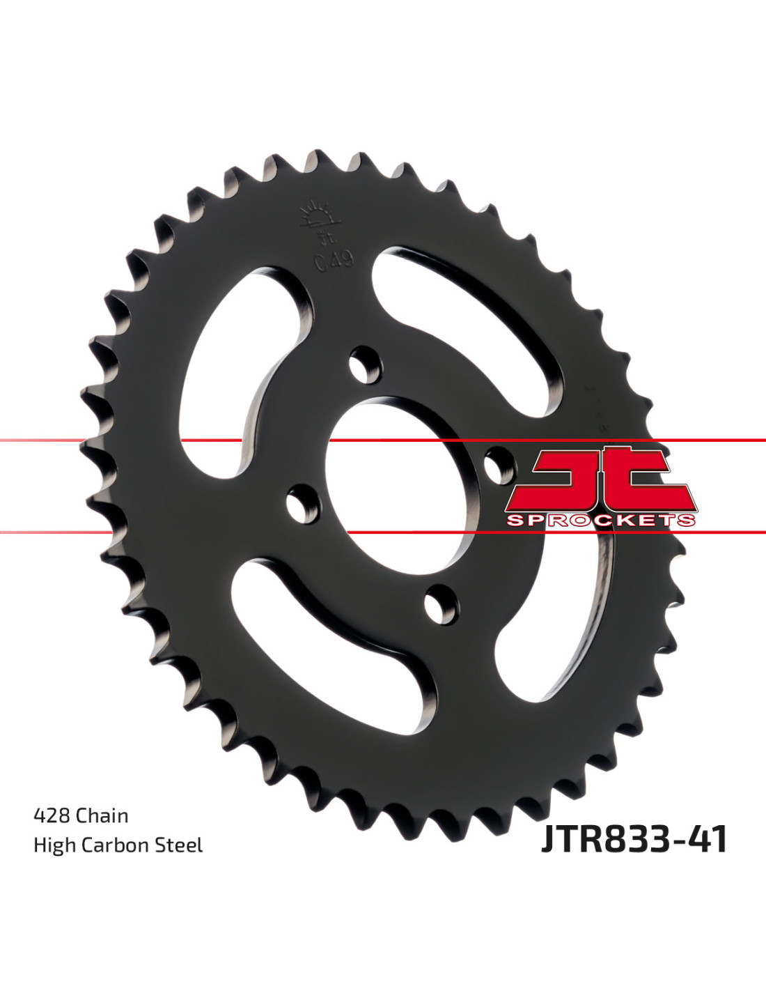 Los piñones y coronas de acero JT se fabrican utilizando acero de alto carbono C49 de la mejor calidad para las coronas y aleación de acero cromado SCM420 para los piñones. La gama de piñones y coronas JT cuenta con más de 2500 modelos para todas las motocicletas y vehículos todo terreno.