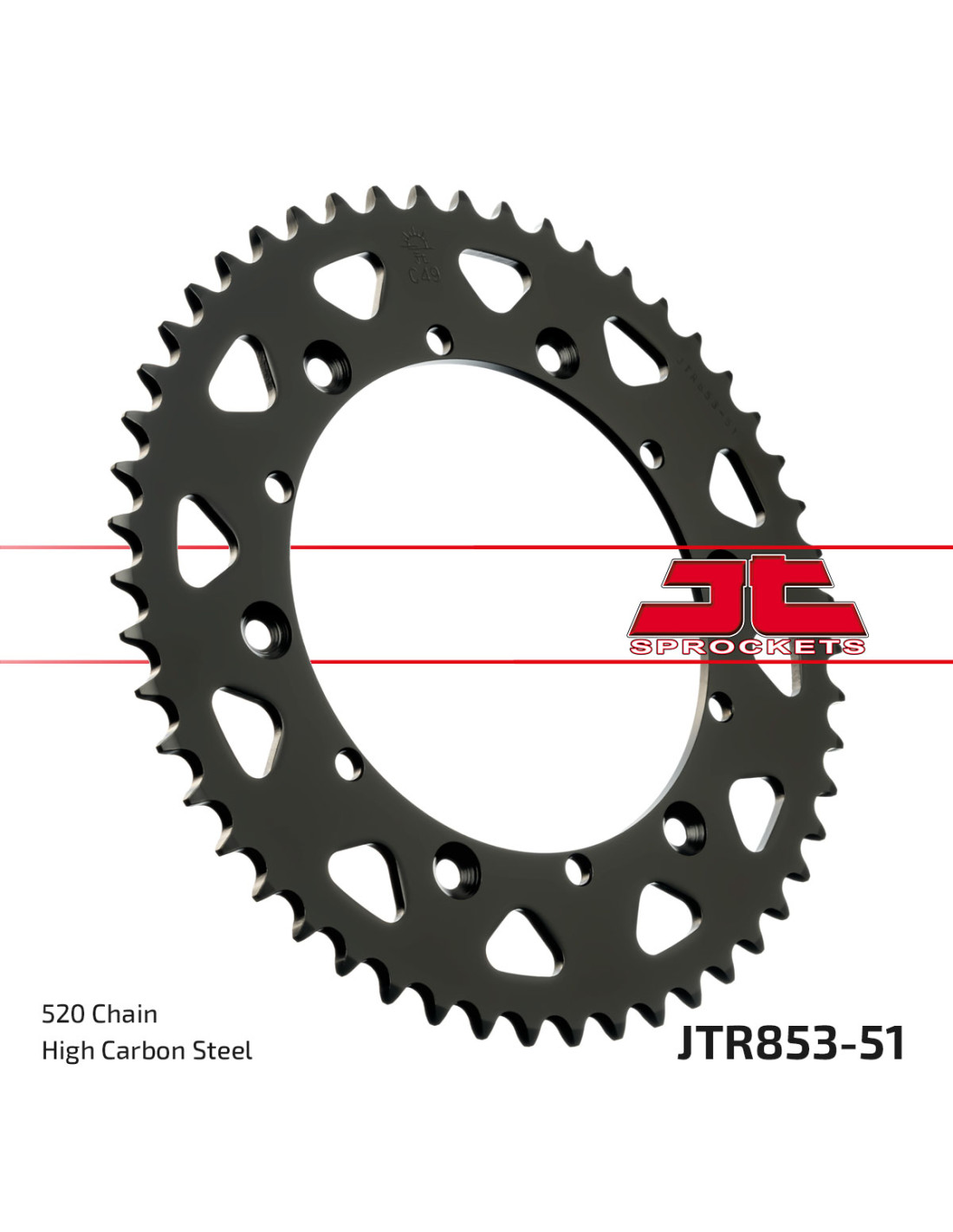Los piñones y coronas de acero JT se fabrican utilizando acero de alto carbono C49 de la mejor calidad para las coronas y aleación de acero cromado SCM420 para los piñones. La gama de piñones y coronas JT cuenta con más de 2500 modelos para todas las motocicletas y vehículos todo terreno.