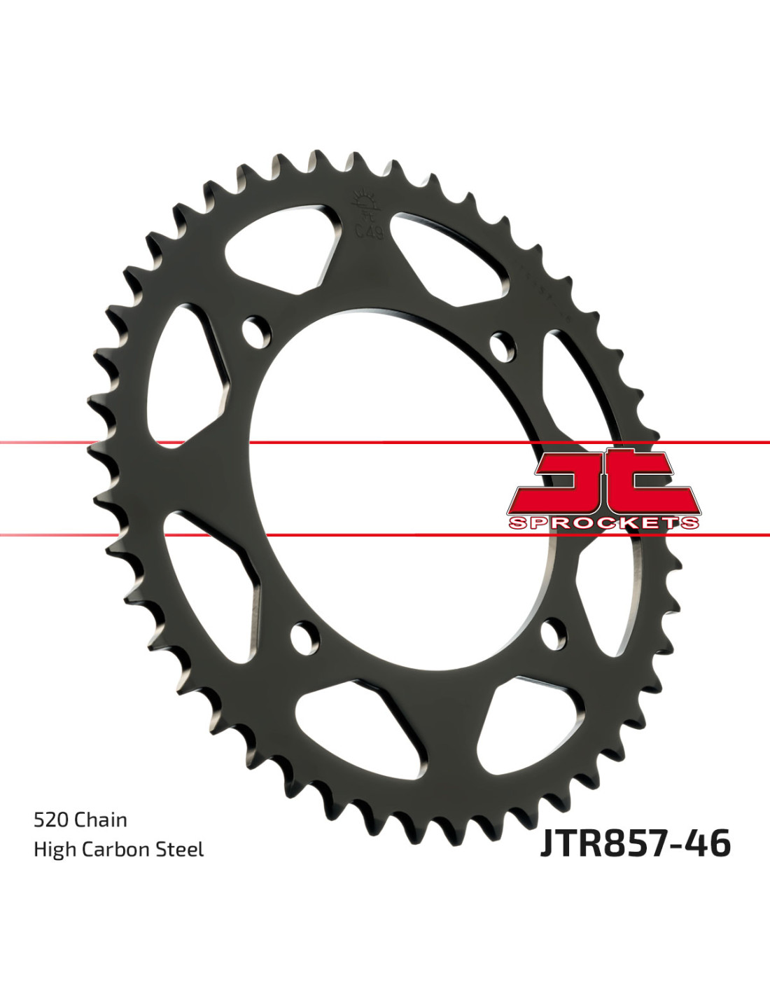 Los piñones y coronas de acero JT se fabrican utilizando acero de alto carbono C49 de la mejor calidad para las coronas y aleación de acero cromado SCM420 para los piñones. La gama de piñones y coronas JT cuenta con más de 2500 modelos para todas las motocicletas y vehículos todo terreno.