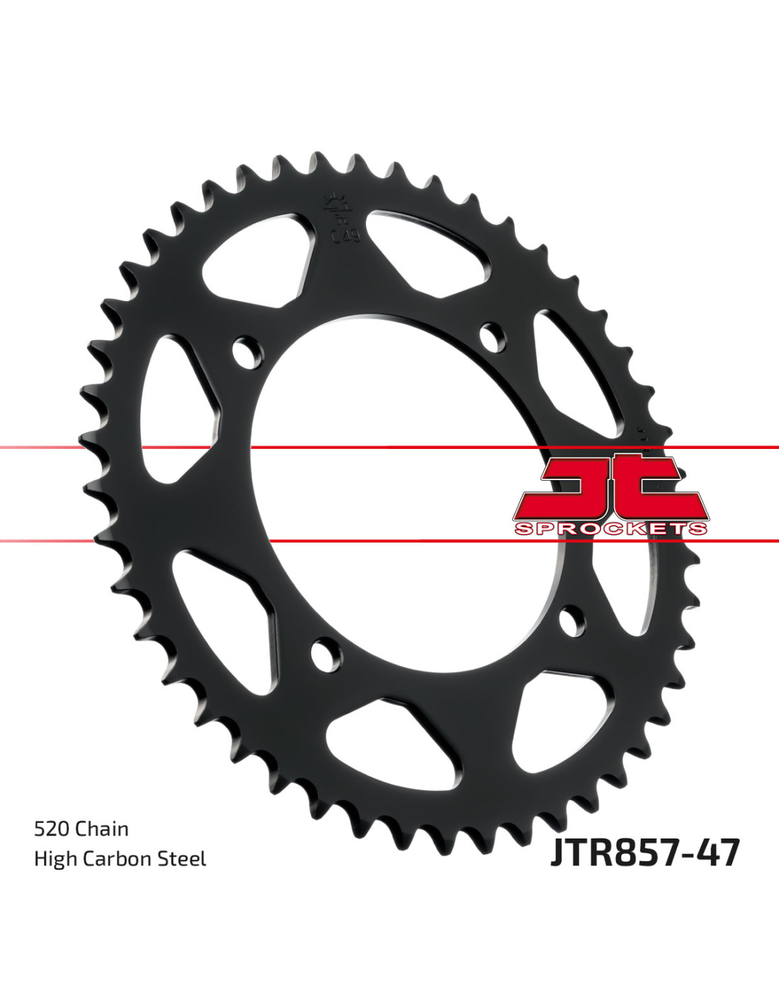 Los piñones y coronas de acero JT se fabrican utilizando acero de alto carbono C49 de la mejor calidad para las coronas y aleación de acero cromado SCM420 para los piñones. La gama de piñones y coronas JT cuenta con más de 2500 modelos para todas las motocicletas y vehículos todo terreno.