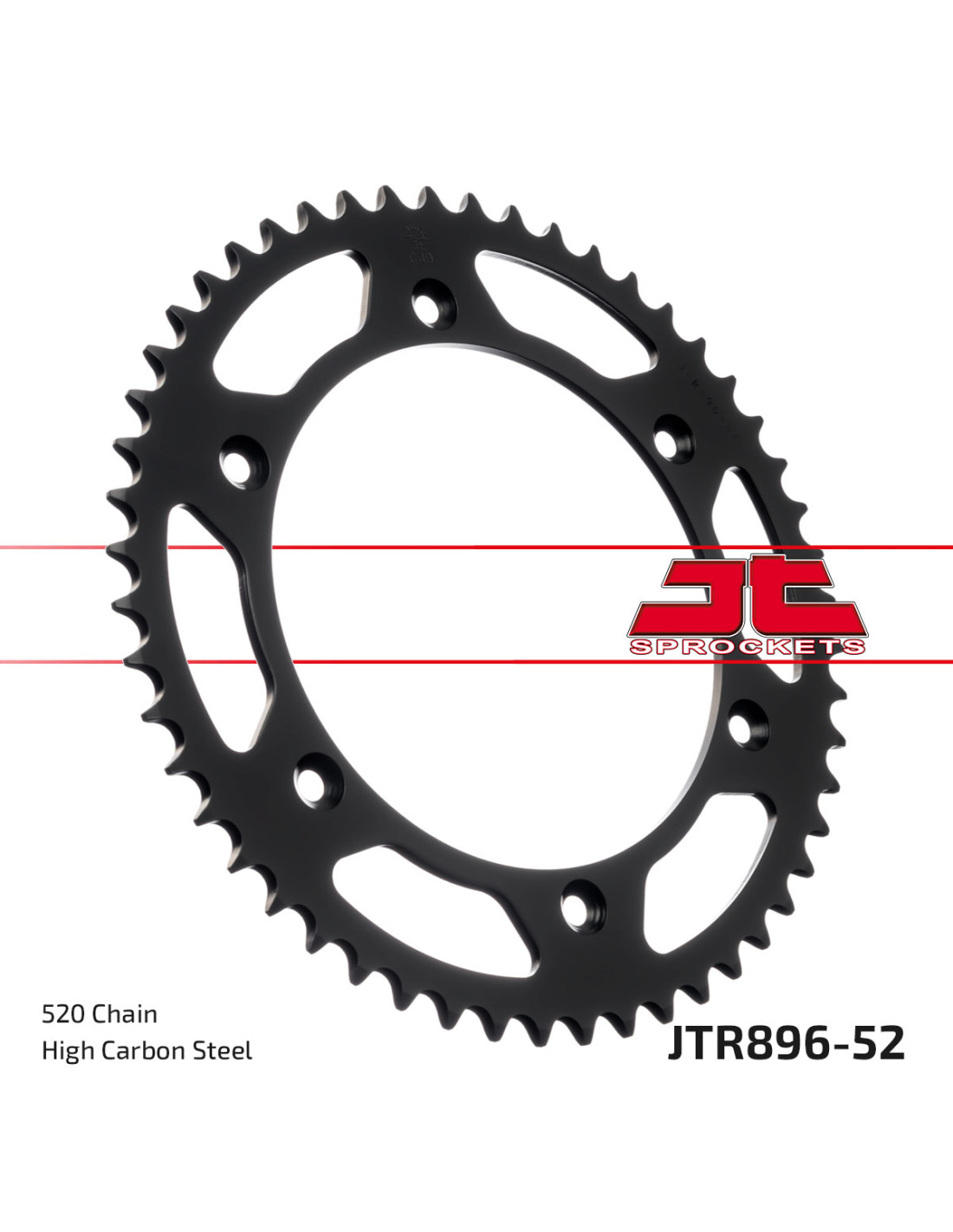Los piñones y coronas de acero JT se fabrican utilizando acero de alto carbono C49 de la mejor calidad para las coronas y aleación de acero cromado SCM420 para los piñones. La gama de piñones y coronas JT cuenta con más de 2500 modelos para todas las motocicletas y vehículos todo terreno.