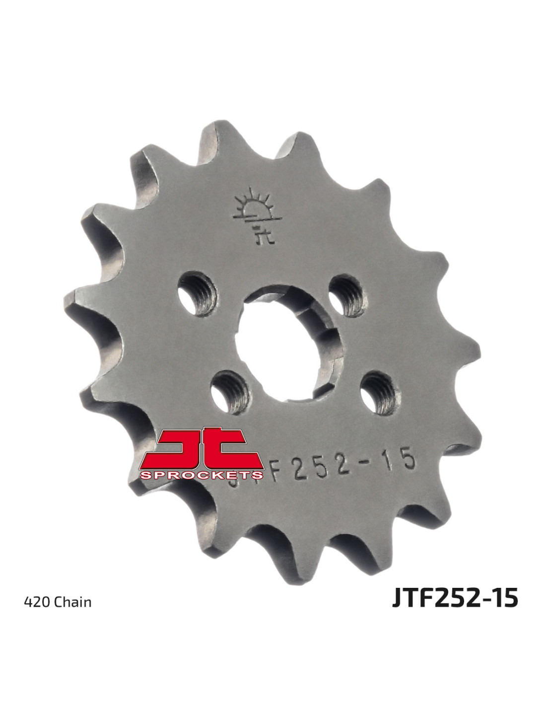 Los piñones y coronas de acero JT se fabrican utilizando acero de alto carbono C49 de la mejor calidad para las coronas y aleación de acero cromado SCM420 para los piñones. La gama de piñones y coronas JT cuenta con más de 2500 modelos para todas las motocicletas y vehículos todo terreno.