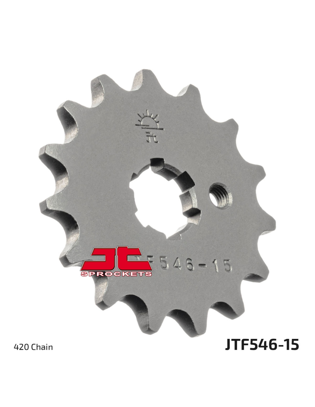 Los piñones y coronas de acero JT se fabrican utilizando acero de alto carbono C49 de la mejor calidad para las coronas y aleación de acero cromado SCM420 para los piñones. La gama de piñones y coronas JT cuenta con más de 2500 modelos para todas las motocicletas y vehículos todo terreno.